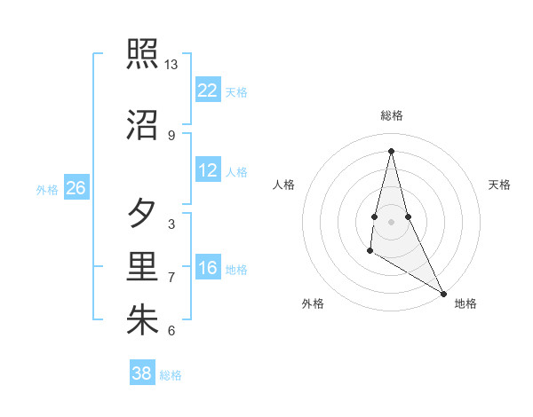照沼 夕里朱さんを姓名の画数から五運を鑑定