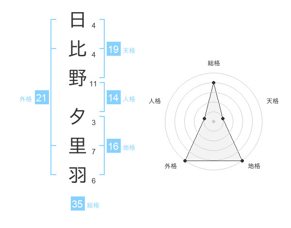 日比野 夕里羽さんを姓名の画数から五運を鑑定