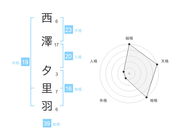 西澤 夕里羽さんを姓名の画数から五運を鑑定