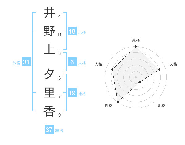井野上 夕里香さんを姓名の画数から五運を鑑定