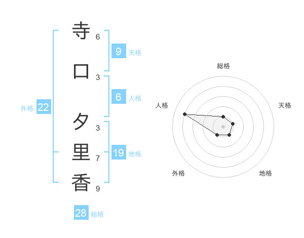寺口 夕里香さんを姓名の画数から五運を鑑定