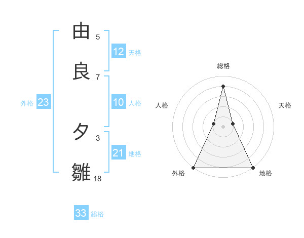由良 夕雛さんを姓名の画数から五運を鑑定