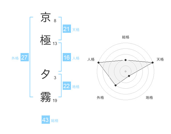 京極 夕霧さんを姓名の画数から五運を鑑定
