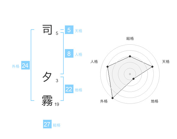 司 夕霧さんの外格は24画の5点!
