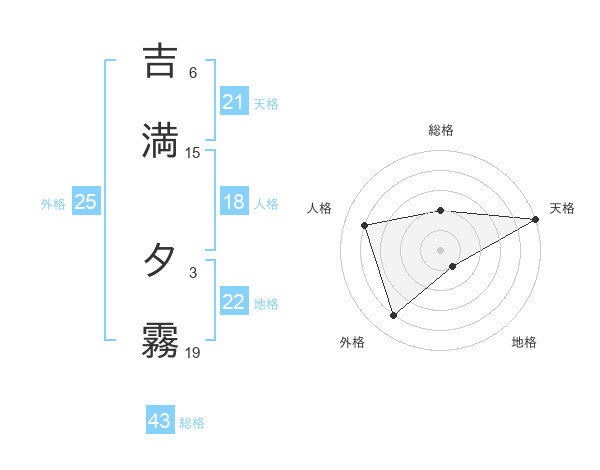 吉満 夕霧さんを姓名の画数から五運を鑑定