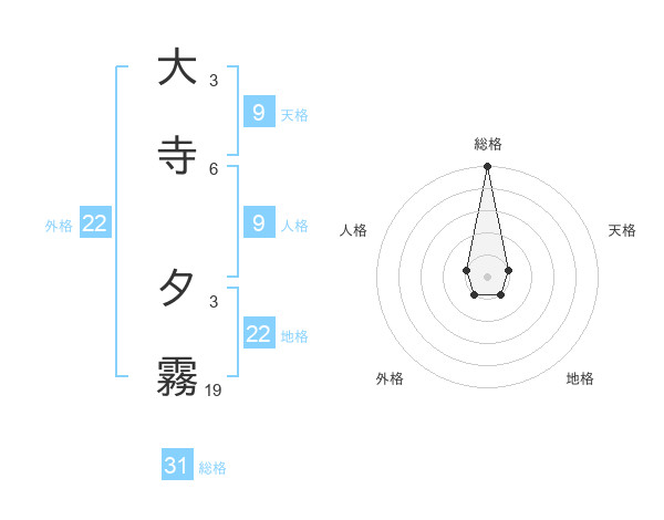 大寺 夕霧さんの総格は31画の5点!