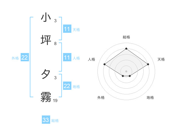 小坪 夕霧さんの外格は22画の1点!
