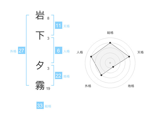 岩下 夕霧さんを姓名の画数から五運を鑑定