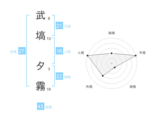 武塙 夕霧さんの天格は21画の5点!