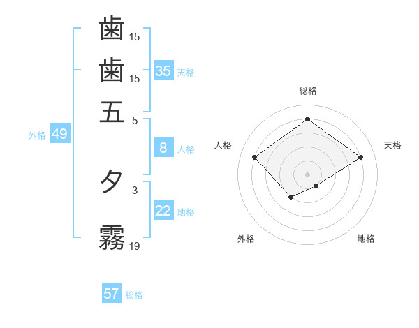 歯歯五 夕霧さんの総格は57画の4点!