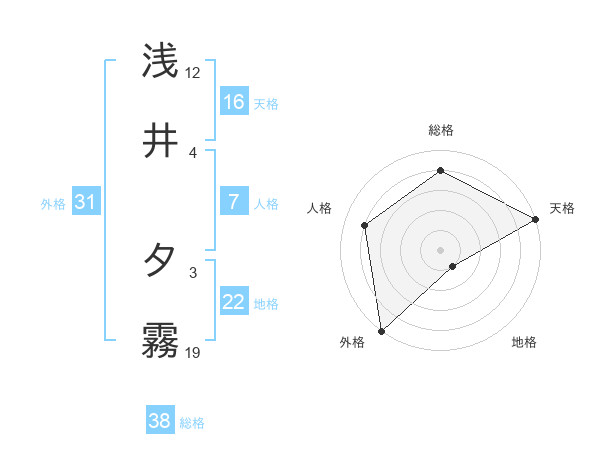 浅井 夕霧さんの総格は38画の4点!