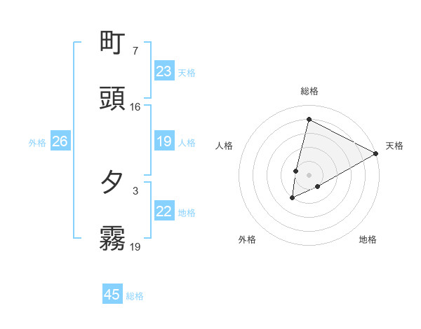 町頭 夕霧さんの総格は45画の4点!