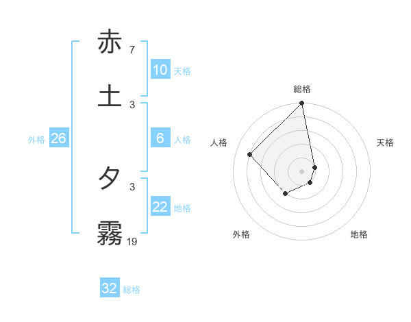 赤土 夕霧さんの総格は32画の5点!