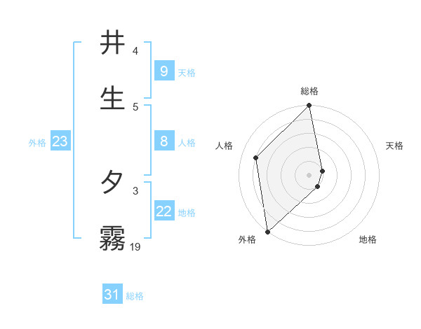 井生 夕霧さんを姓名の画数から五運を鑑定