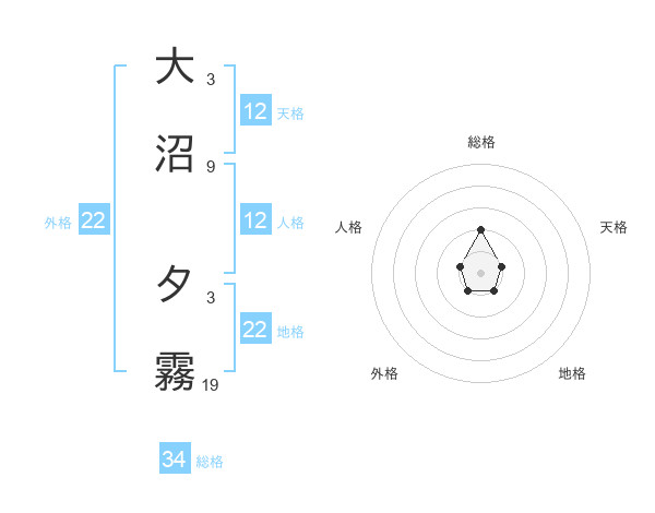 大沼 夕霧さんを姓名の画数から五運を鑑定