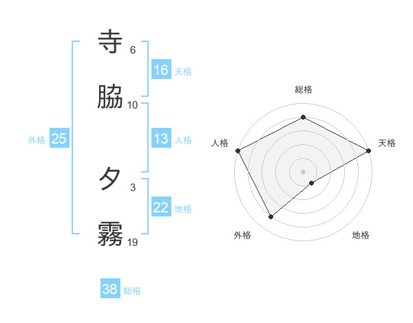 寺脇 夕霧さんを姓名の画数から五運を鑑定