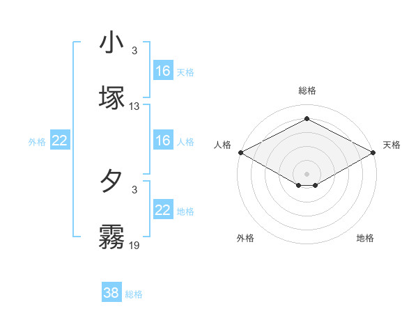 小塚 夕霧さんの総格は38画の4点!