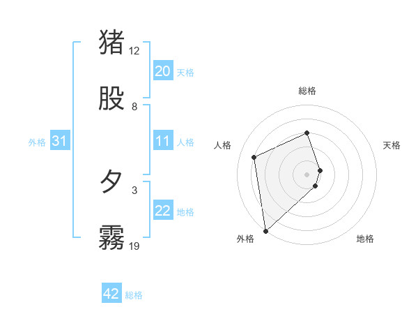 猪股 夕霧さんを姓名の画数から五運を鑑定