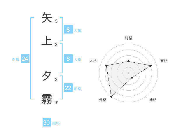矢上 夕霧さんを姓名の画数から五運を鑑定