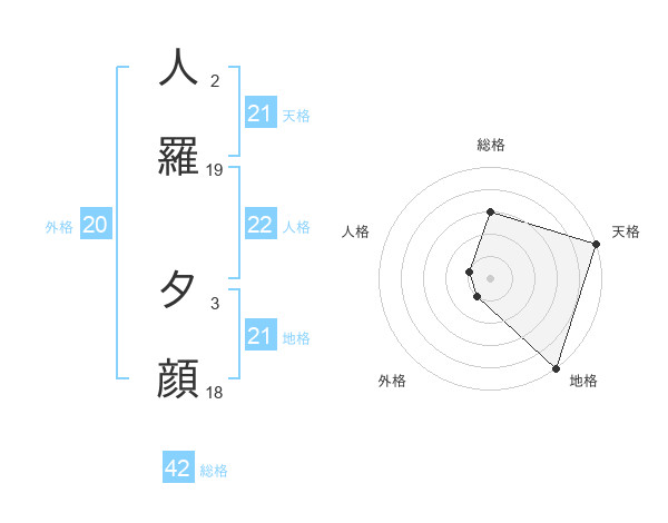 人羅 夕顔さんの天格は21画の5点!