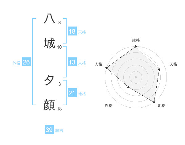 八城 夕顔さんの総格は39画の5点!