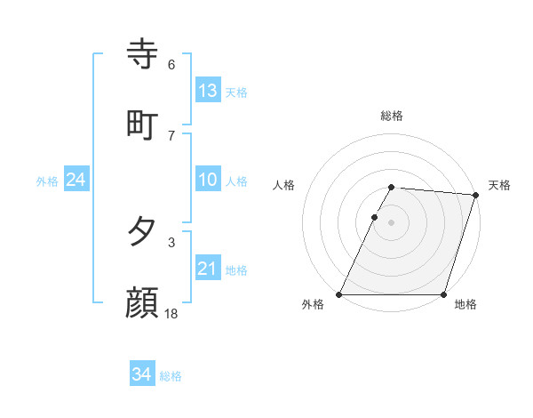 寺町 夕顔さんの地格は21画の5点!