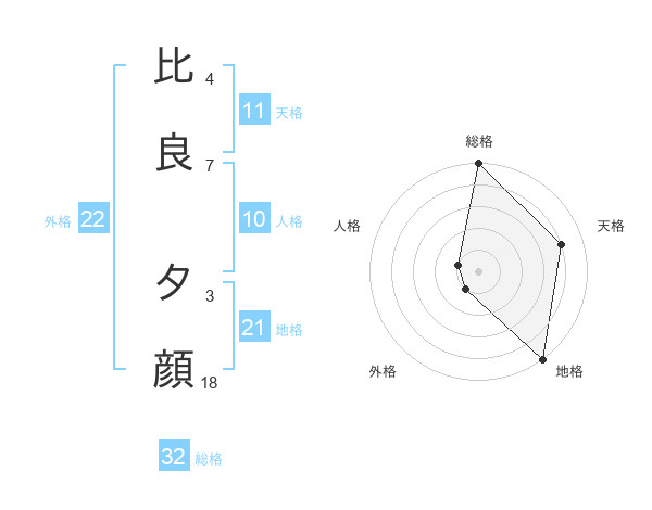 比良 夕顔さんの外格は22画の1点!