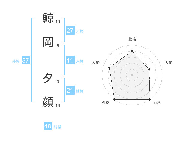 鯨岡 夕顔さんの外格は37画の5点!