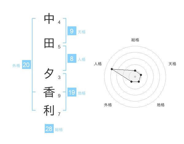 中田 夕香利さんの総格は28画の1点!