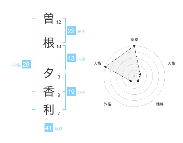 曽根 夕香利さんを姓名の画数から五運を鑑定