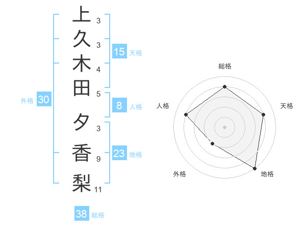 上久木田 夕香梨さんを姓名の画数から五運を鑑定