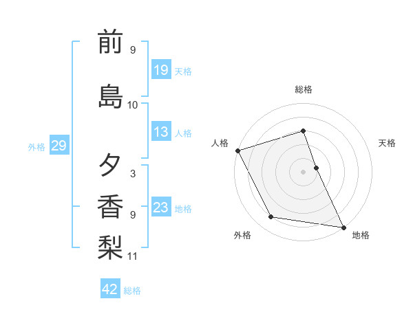 前島 夕香梨さんを姓名の画数から五運を鑑定