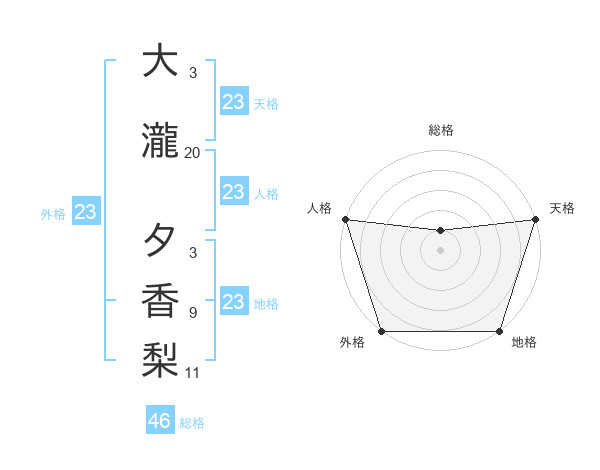 大瀧 夕香梨さんを姓名の画数から五運を鑑定