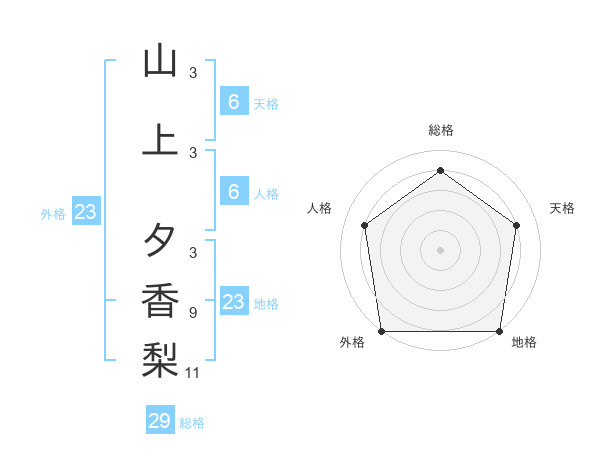 山上 夕香梨さんを姓名の画数から五運を鑑定