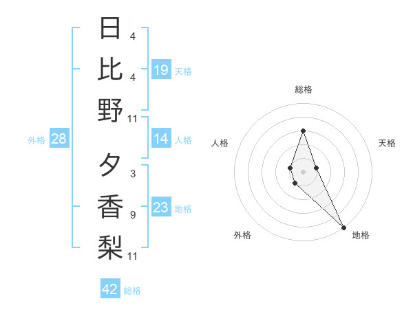 日比野 夕香梨さんを姓名の画数から五運を鑑定