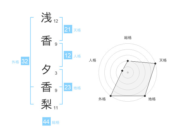浅香 夕香梨さんを姓名の画数から五運を鑑定