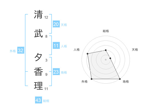 清武 夕香理さんの天格は20画の1点