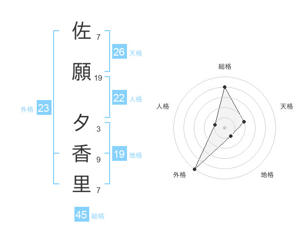佐願 夕香里さんを姓名の画数から五運を鑑定