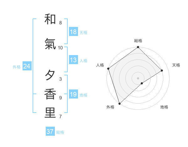 和氣 夕香里さんを姓名の画数から五運を鑑定