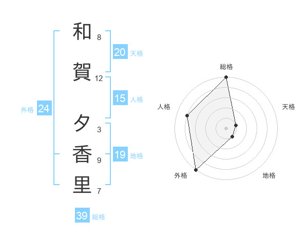 和賀 夕香里さんを姓名の画数から五運を鑑定