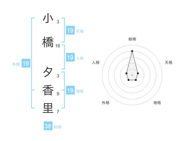 小橋 夕香里さんを姓名の画数から五運を鑑定