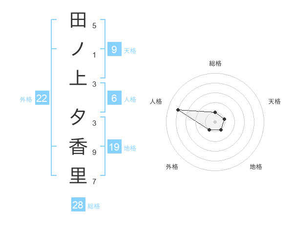 田ノ上 夕香里さんを姓名の画数から五運を鑑定