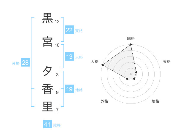 黒宮 夕香里さんを姓名の画数から五運を鑑定