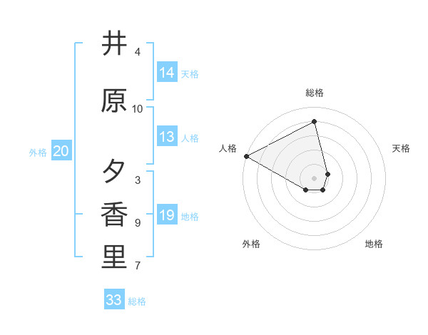 井原 夕香里さんを姓名の画数から五運を鑑定