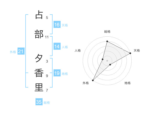 占部 夕香里さんを姓名の画数から五運を鑑定