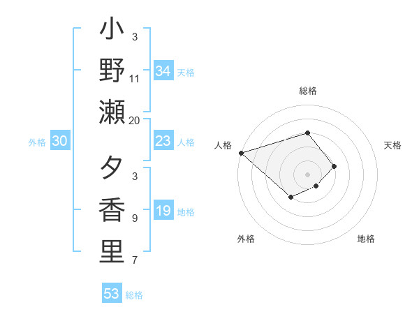 小野瀬 夕香里さんを姓名の画数から五運を鑑定