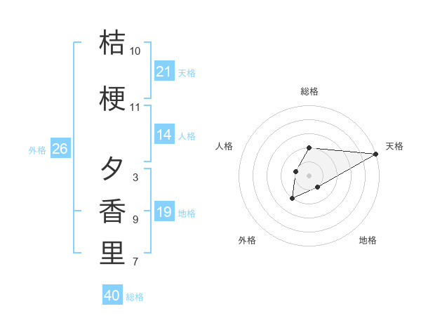 桔梗 夕香里さんを姓名の画数から五運を鑑定