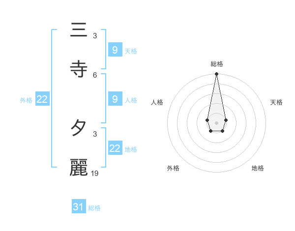 三寺 夕麗さんを姓名の画数から五運を鑑定