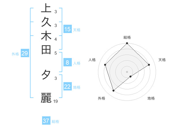上久木田 夕麗さんの総格は37画の5点!