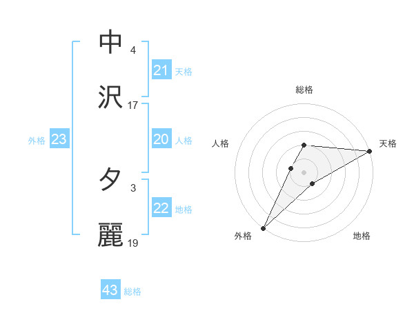 中沢 夕麗さんの外格は23画の5点!